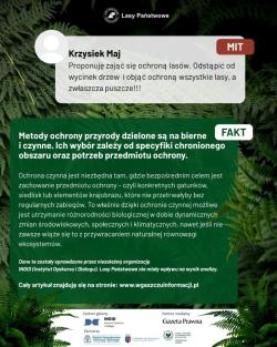 Kampania „W gąszczu informacji” ma na celu zwiększyć odporność społeczną na manipulację – poprzez edukację, sprawdzone dane i prosty język. Działając na styku natury, nauki i komunikacji, Lasy Państwowe wraz z partnerami podejmują temat dezinformacji jako realnego zagrożenia dla środowiska. Uważamy, że skuteczna ochrona przyrody zaczyna się od faktów i od umiejętności ich rozróżniania.
